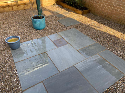 A small patio was laid with stepping stones installed leading to the covered seating area.